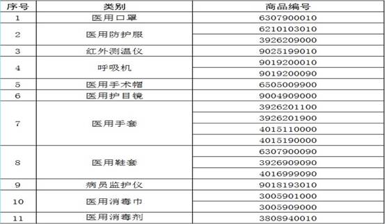 海关总署“53号公告”列明的11类医疗物资纳入法检的商品(见附件)。